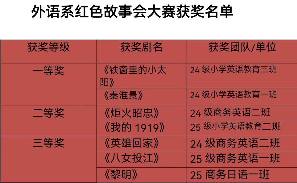 外语系张秀红书记表示,本次大赛以 “用青春演绎经典,用信仰照亮征程” 为核心,通过创新艺术形式让红色故事 “活起来”,既丰富了校园文化生活,更引导青年学生在沉浸式体验中感悟英烈精神。下一步,外语系将持续开展多样化红色文化活动,让红色基因融入青春血脉,激励学子成为有理想、敢担当、能吃苦、肯奋斗的新时代青年,以实际行动传承革命精神、担当时代使命。
