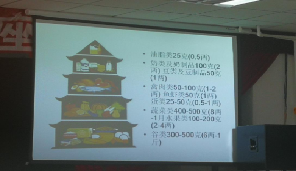在现场,白园长用生动的语言向同学们介绍了膳食宝塔,并向大家介绍了几种重要的健康指标测量方法。还就膳食方面给出宝贵建议:吃动平衡,健康体重;多吃蔬果、奶类、大豆;适量吃鱼、禽、蛋、瘦肉;少油少盐、控糖限酒等等,让营养健康的理念在校园中传承。