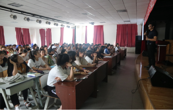 沈阳市营养师协会执行会长黄成超老师用通俗易懂的语言为师生介绍了饮食常见问题、如何正确饮食,以及特殊膳食一些注意事项等。黄老师还着重介绍了演讲所需的六大要素和“营养讲师大赛”的部分事项。