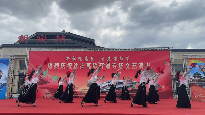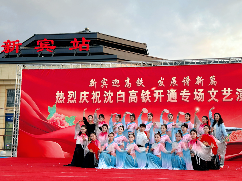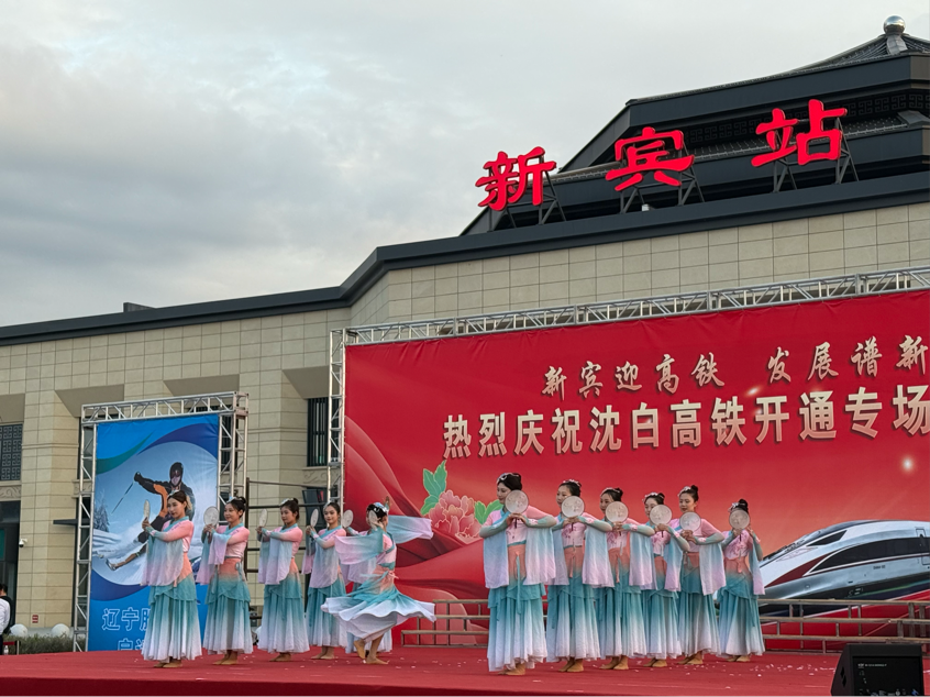 9月28日11时59分沈白高铁正式通车,由沈阳北站驶来的G8157次列车抵达新宾站,这趟列车11点10分从沈阳北出发,行驶49分钟便抵达新宾。这一历史性时刻标志着新宾正式迈入“高铁时代”。这座蕴藏着深厚历史文化底蕴的古城也有了自己的第一个高铁站,为庆祝这个特殊的日子,“新宾迎高铁,发展谱新篇”庆祝沈白高铁通车活力新宾文艺展演在抚顺新宾站举行。学前教育系舞团受新宾满族自治县委宣传部邀约,共同庆祝国家重大交通工程—沈白高铁正式通车。