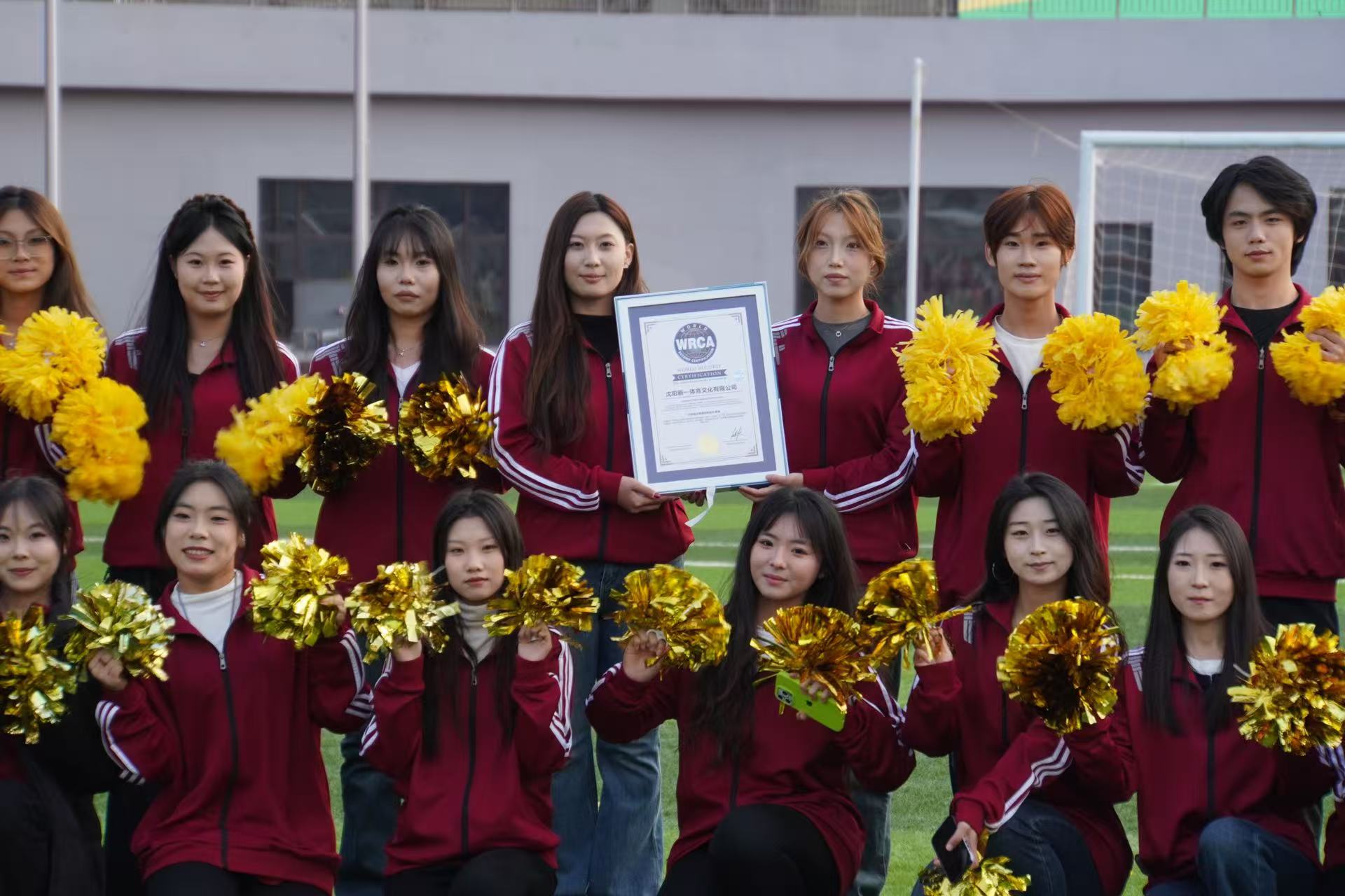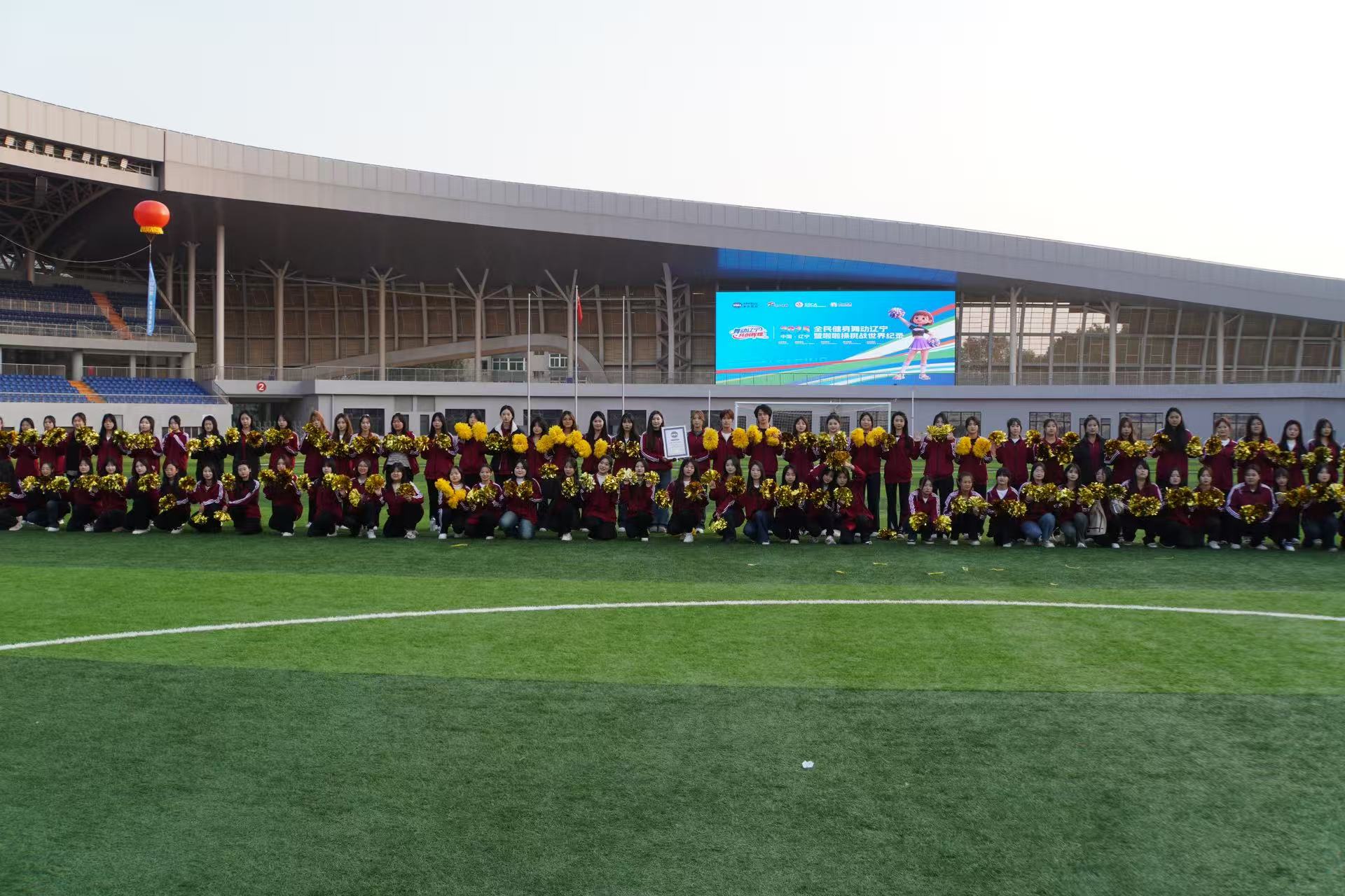 2025年10月25日,在沈阳市沈河区文化体育中心,一项沉寂已久的世界纪录被刷新。我系100名学生在队长石沛鑫的带领下,自发参与“世界最大规模啦啦队表演”挑战,与全国青少年啦啦操运动员共同组成2178人团队,以高度统一的动作和饱满的激情,成功完成历时五分钟的表演,获得世界纪录认证机构(WRCA)正式认证。
