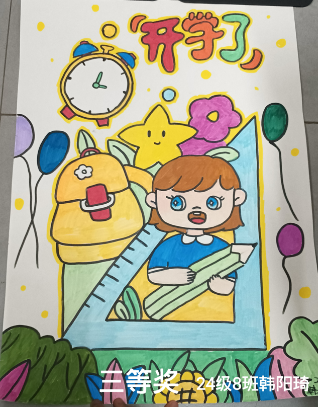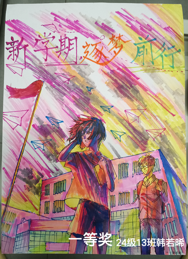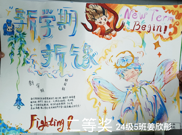 活动开展前,由宣传部通知23、24级各班负责人本次活动要求及注意事项。要求以“新学期”为主题,开展海报绘画活动,用画笔描绘出对新学期的期待。并进行新学期安全教育班会,从校园安全,网络安全,交通安全等多方面进行展开交流。