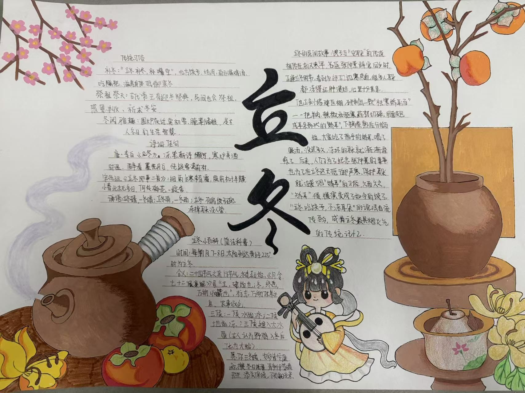 为了让同学们感受立冬氛围,展示“立冬”节气24、25级各班同学通过丰富多样,色彩饱满的4K手抄报展现了立冬的节气特点和传统习俗。