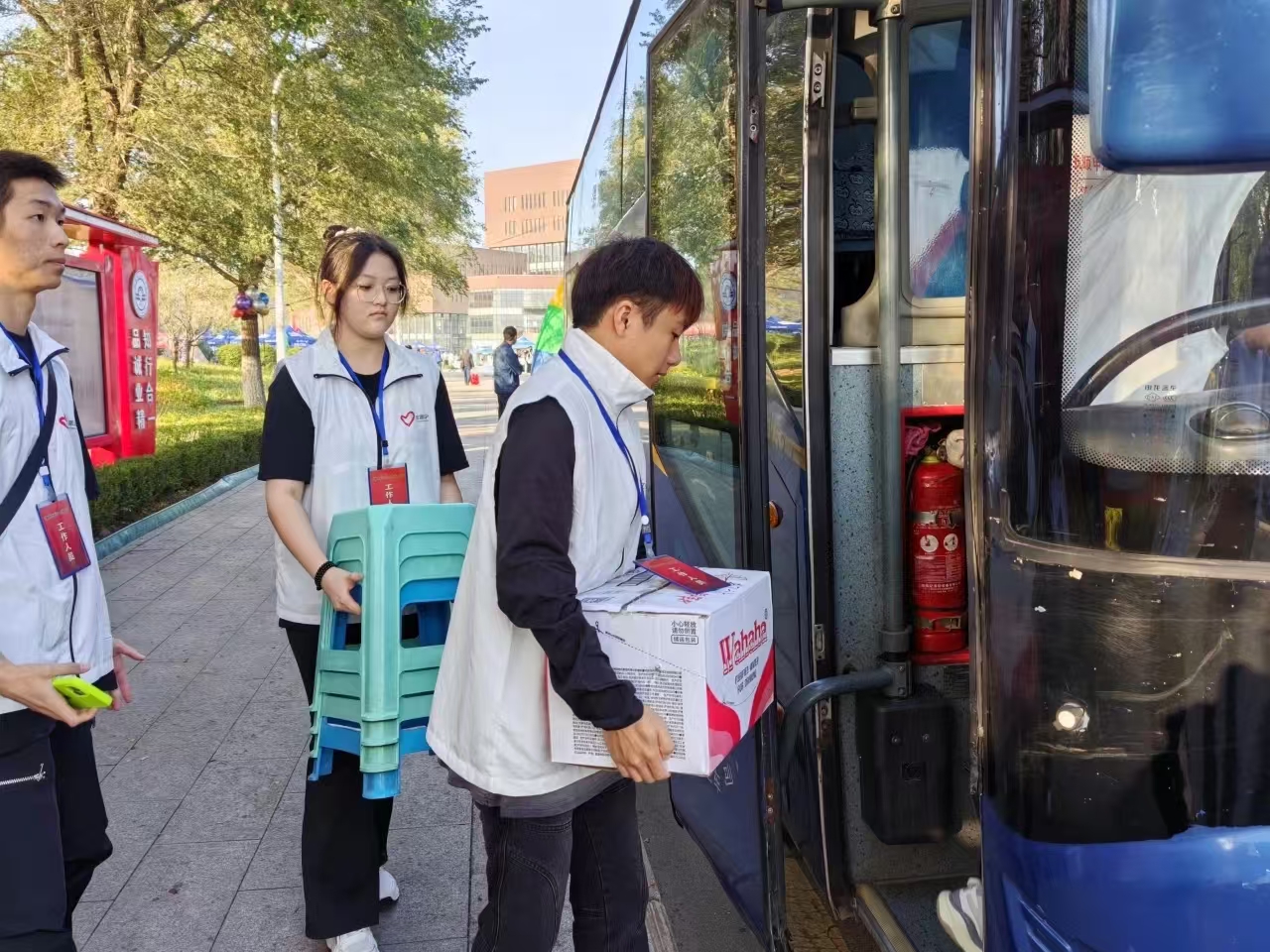 志愿者们一边接过行李,一边引导新生走向接站的车辆。大家井然有序地上车,开启充满充满挑战与机遇的大学之旅。