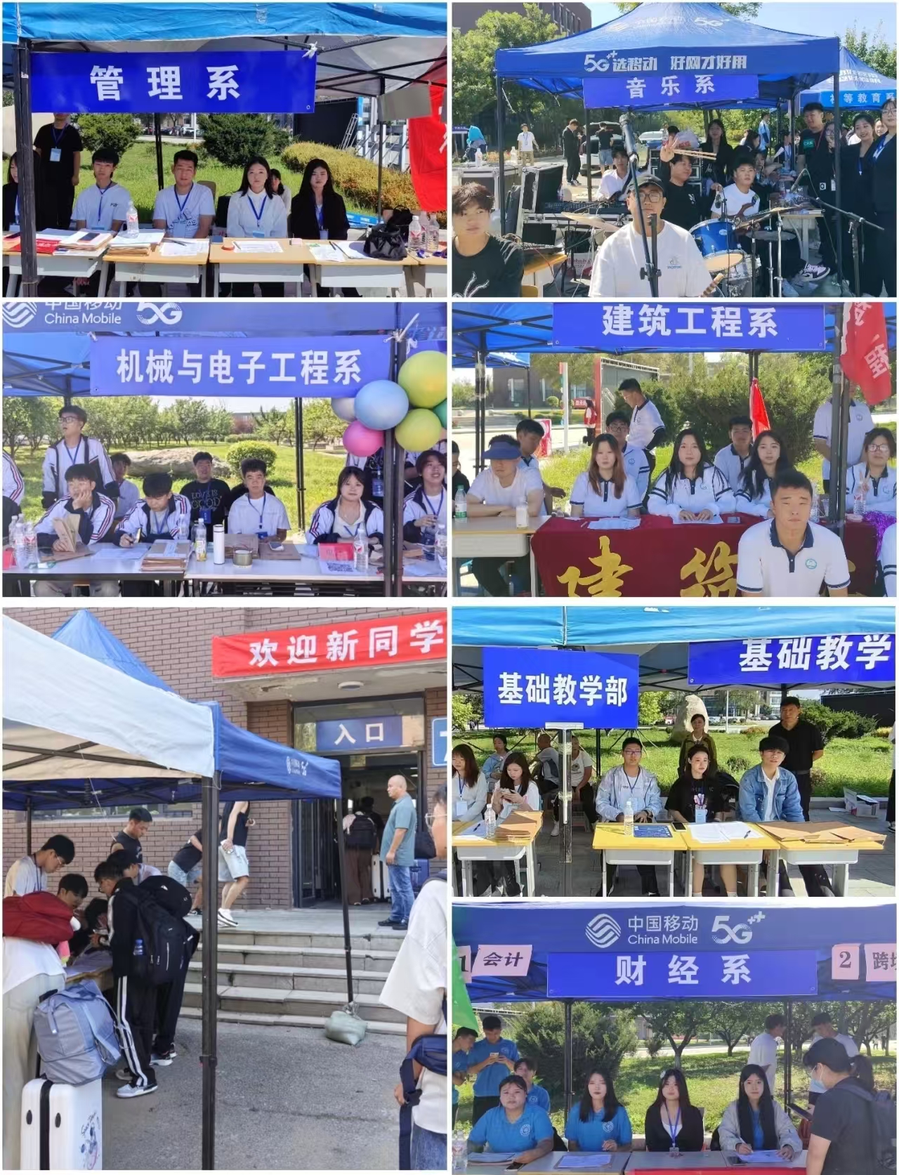 到达校园后,各系都设立了专门的报到处,为新生提供便捷的报到流程。新生在充满欢乐的氛围中完成报到手续。