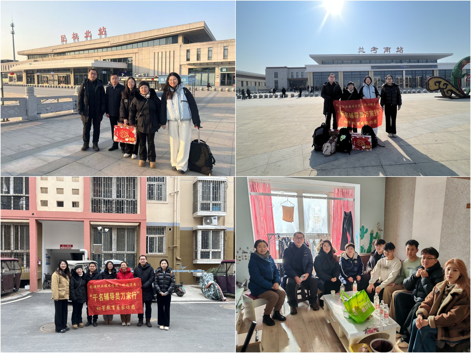 寒风劲绘冬日画卷,学院(校)“家校共育、温暖同行”主题寒假家访活动正在火热进行,跨越山水传递着教育深情。由学院(校)领导亲自带队,辅导员、班主任、专任教师及学生科工作人员等40余人组成多个家访小组,带着对学生的牵挂与责任,踏上了温暖人心的家访之旅。他们深入城乡各地,截至目前,家访足迹已遍及河南省、重庆市、广西壮族自治区等省内外十余个城市,用实际行动诠释了育人温度与力量。