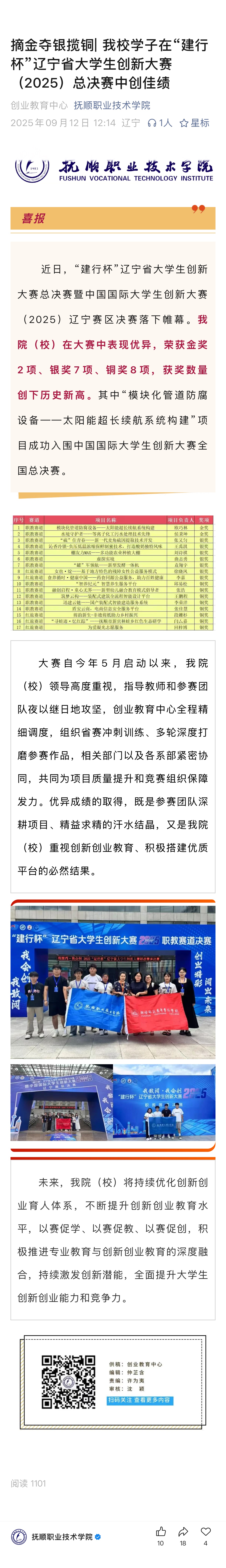 摘金夺银揽铜| 我校学子在“建行杯”辽宁省大学生创新大赛(2025)总决赛中创佳绩